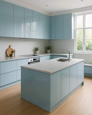 Modern Shaker Style Kitchen Cabinet for Apartment Glossy Paint Wood Furniture with Sink Base Cabinets Home Kitchen Design